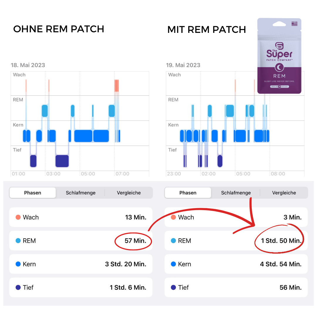 Besserer Schlaf ist entscheidend für Ihr Wohlbefinden. Mit dem REM Super Patch können Sie auf natürliche Weise einen erholsameren Schlaf genießen, ohne auf Medikamente zurückgreifen zu müssen. Entdecken Sie die Kraft des natürlichen Schlafs – unterstützend im Wellnessbereich.